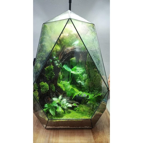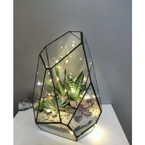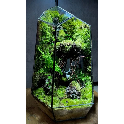 Флорариум органично впишется как в современный минималистичный интерьер, так и в более эклектичные пространства. Он станет выразительным акцентом в гостиной, кабинете или офисном лобби.